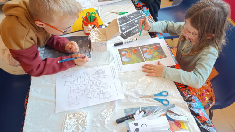 Des enfants sages et appliqués à écouter les conseils afin de réaliser de quoi vous faire peur pour cette journée d’halloween.