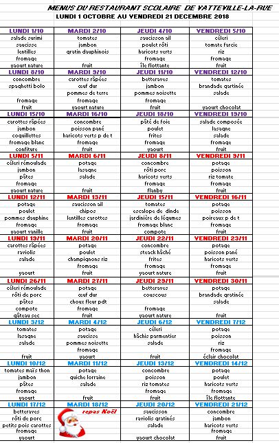 menus oct nov dec