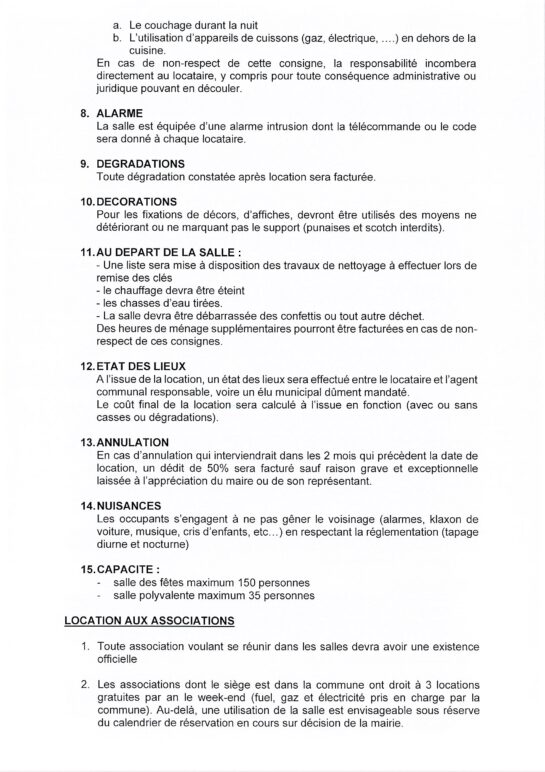 TARIFS LOCATIONS SALLES COMMUNALE